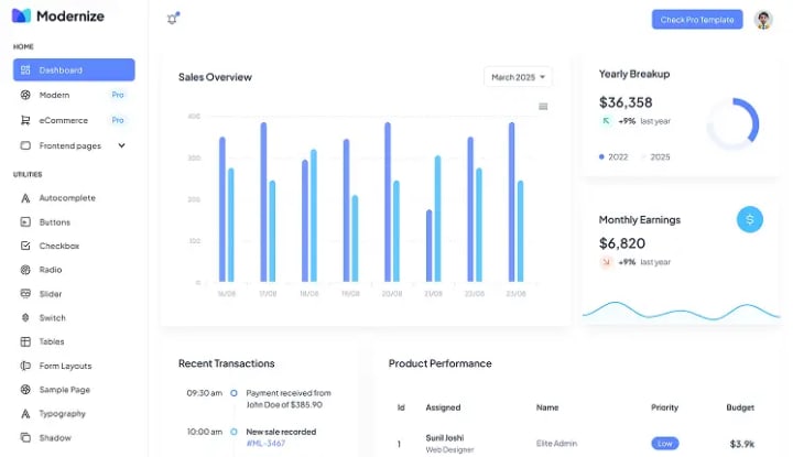 Modernize Free React Dashboard