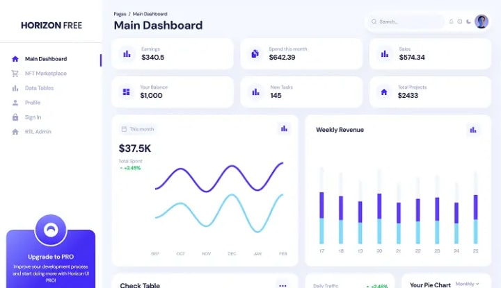 4. Built with Modern Frameworks- Dashboards using frameworks like Material UI, Tailwind CSS, Ant Design, and Chakra UI often offer better design consistency and performance.