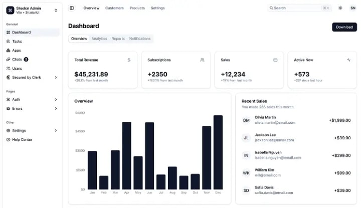 Based on ShadCN UI, this admin template offers a versatile and user-friendly design approach for contemporary user interfaces.