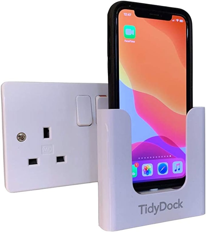TidyDock is a unique and innovative charging accessory for iPhone that offers a secure 'Snap Fit' with your genuine Apple triangular 5W Power adaptor (not included) or geometrically similar. It comes with an included cable that also works with genuine Apple cables or geometrically similar cables. This accessory is designed to provide a contemporary, minimalist design that can easily set up sturdy, secure, and safe iPhone charging points in any room or use around your office space for your staff.