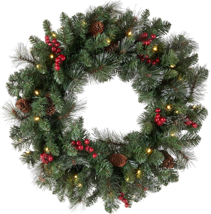 2. National Tree Company Pre-Lit Artificial Christmas Wreath, Crestwood Spruce, 24 Inches