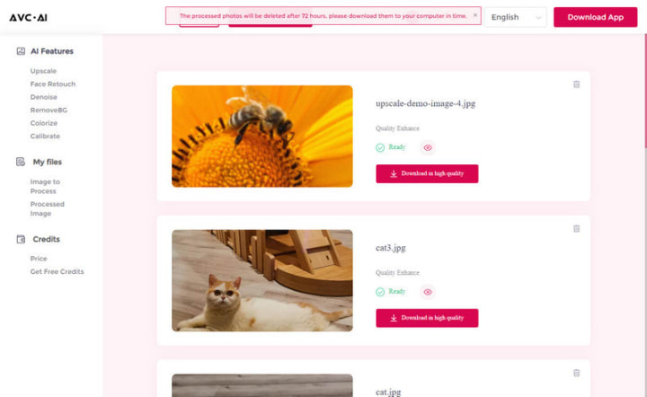 Note: The processed photos will be deleted after 72 hours, please download them to your computer in time.