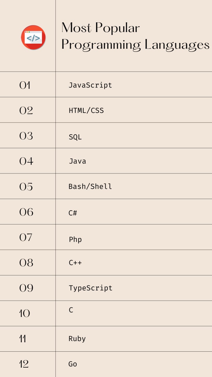 List of top programming languages to learn.