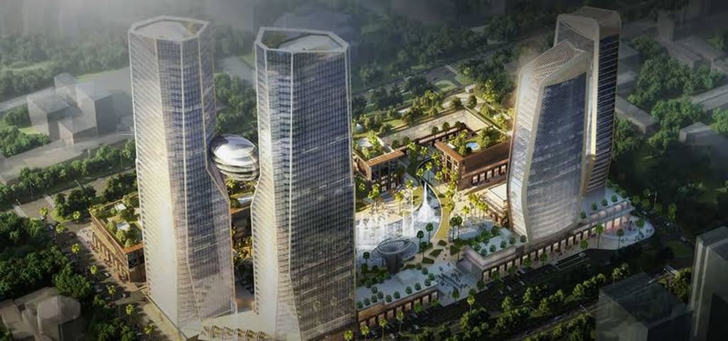 The project covers an area of over 27 acres and comprises two towers, with a total of 50 floors. The towers are connected by a sky bridge, which not only adds to the visual appeal of the project but also serves as a convenient mode of transportation for the occupants.