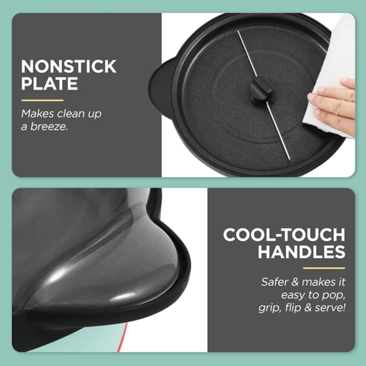 • EASY TO CLEAN: Nonstick popping hot plate is simple to clean, wipe gently away crumbs or residue in no time.
