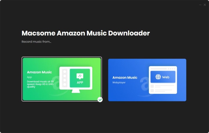 Macomse released a new version of Amazon Music Downloader, allowing users to download music from the Amazon Music app or the Amazon Music web player. If you choose to download music from the Amazon Music app, you could download Amazon Music with up to Ultra HD quality.