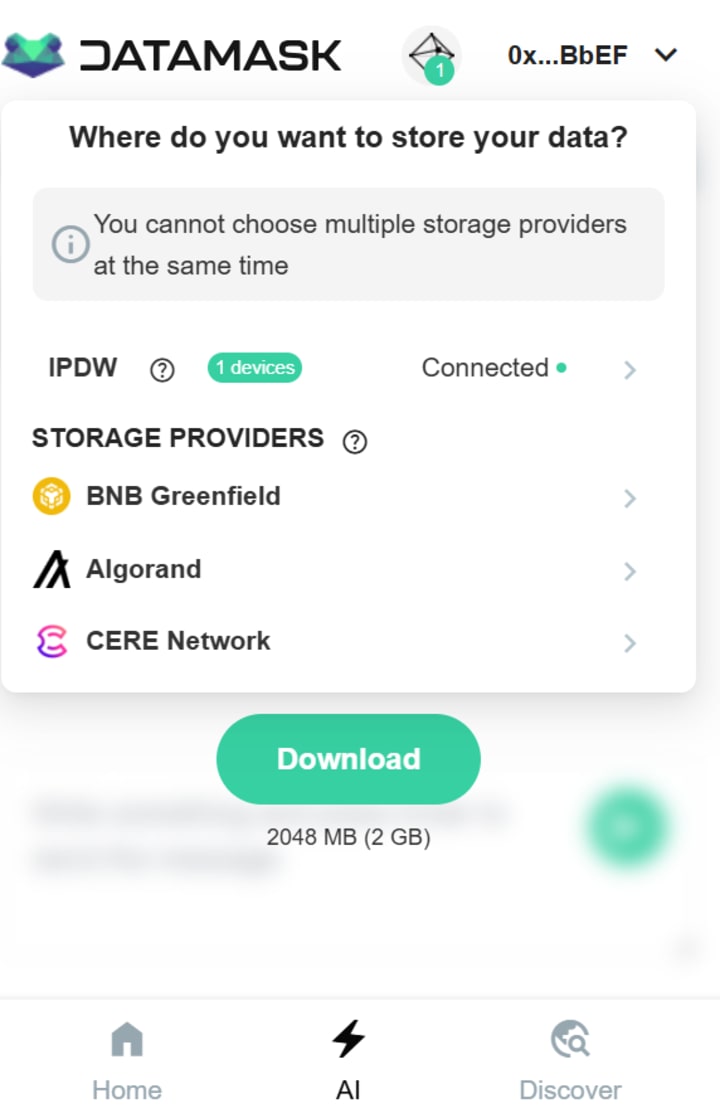 Datamask protects your data using advanced encryption technologies and secure local storage on your device. It leverages the power of IPDW (InterPlanetary Data Wallet) for storing personal user data within a safe and distributed storage network, enhancing security and privacy.