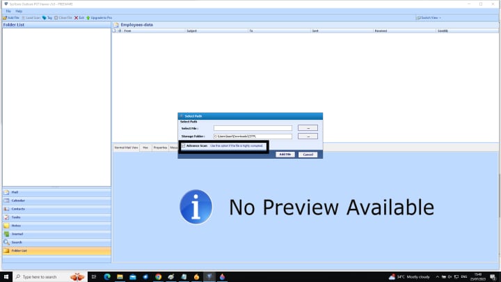 Step 2.) Click Add File and navigate to view the PST file with the Advance Scan option.