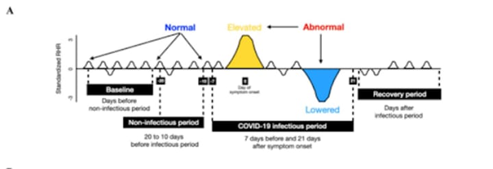 The Warrior Watch Study also considered the possibility of using data on heart rate variability measured with an Apple Watch for early detection of COVID-19. The cardiologist Eric Topol, MD states: