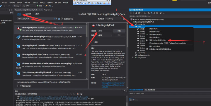 (1) first create a console project learningHtmlAgilityPack