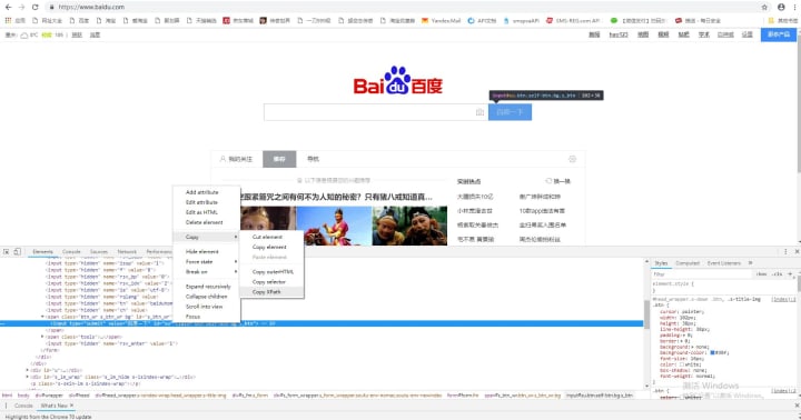 (3) After the installation is complete, we will take Baidu as a case study, from which to get the value of the Baidu search button