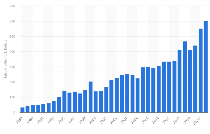 The market size is expected to go up to a staggering 600 billion U.S dollars by 2022.