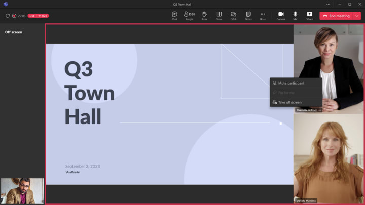 To maintain attendee focus, presenters can manage their view to only see participants brought on-screen and shared content. This means that presenters ca bring other presenters off-screen to create a more polished, streamlined presentation. This new update allows seven presenters to be featured along screen alongside content at any given time.