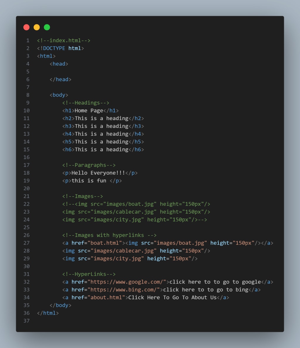 The body tag contains all the content that the user sees on the screen. This includes: