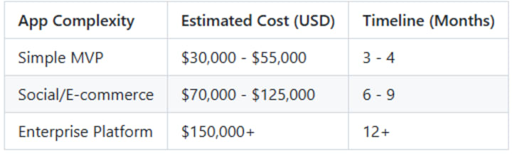 Mid-range apps with API integrations and custom UI usually land between seventy and one hundred thousand. These are proper products ready for a real user base. Most startups fit into this specific category.