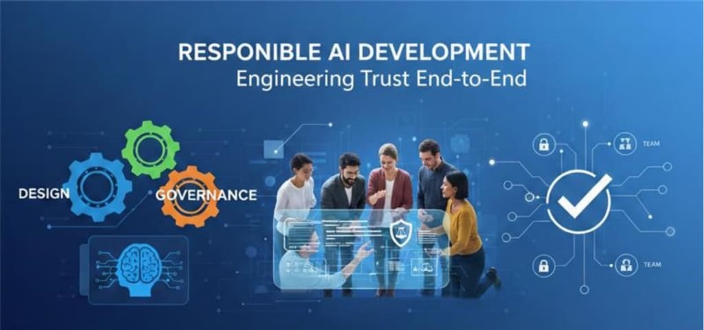 Responsible AI development ensures that AI systems are ethical, secure, transparent, and aligned with business objectives. For modern teams, this means embedding responsibility into every phase of the AI lifecycle from design to testing to governance.