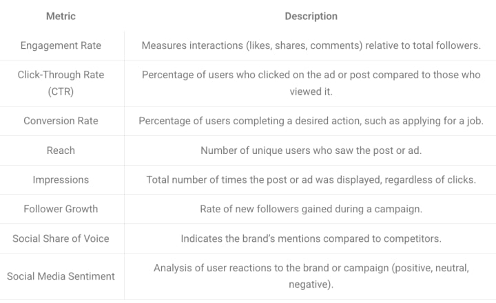 To determine the success of social media campaigns in recruitment, it is essential to track key metrics. These metrics provide insight into how well campaigns are performing and where improvements can be made.