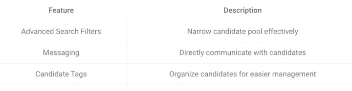 LinkedIn Recruiter is a premium tool designed specifically for recruitment professionals. It allows recruiters to source and interact with candidates efficiently. Utilizing advanced search filters, recruiters can narrow down their candidate pool based on skills, experience, and location. The platform also offers candidate management features such as messaging, notes, and tags to streamline the recruiting process.