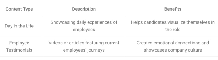 To attract passive jobseekers, it is essential to create engaging and relatable content. One effective strategy is to develop "day in the life" narratives that showcase the real experiences of current employees. This approach allows potential candidates to visualize themselves in available roles while humanizing the employer brand. Featuring real employees may also foster a sense of authenticity that passive candidates find appealing.