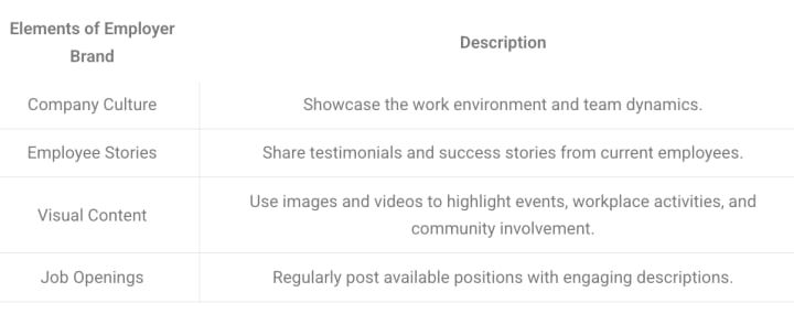 A well-crafted employer brand communicates the organization’s values, culture, and mission, making it easier to attract candidates who resonate with those ideals. Key components of an effective social media employer brand include: