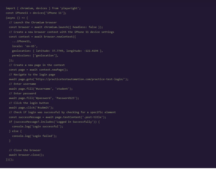 With the increasing popularity of dark mode and other user-specific color preferences, Playwright’s mobile device emulation capabilities enable testers to validate how a web application’s design performs under different color schemes. This includes checking the consistency and accessibility of the application’s appearance in both light and dark modes. By doing so, developers can ensure that their applications provide a visually pleasing and user-friendly experience regardless of the user’s color scheme preference.