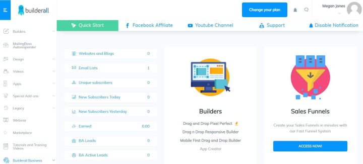 Builderall is a digital marketing platform that allows you to quickly and easily create websites, landing pages, eCommerce stores, and everything you need to run your online business. It has been designed and developed to help entrepreneurs, small businesses, and large companies. This solution boasts a wide range of features, including: — Build and host websites. With this feature, you can create professional-looking websites for your business. For example, you can use Builderall to create a website for your store, blog, or product. — Design and manage social media channels. Using this digital marketing platform, you can automate your social media marketing activities, track your performance, and engage with your followers. — Create and manage email marketing campaigns. This feature allows you to create attractive and engaging email marketing campaigns. You can also use this tool to track your performance and manage your subscribers. — Create engaging and interactive online surveys. With Builderall, you can create surveys to understand your customers better and determine what they need or want. You can then use this information to better serve your customers and improve your business.