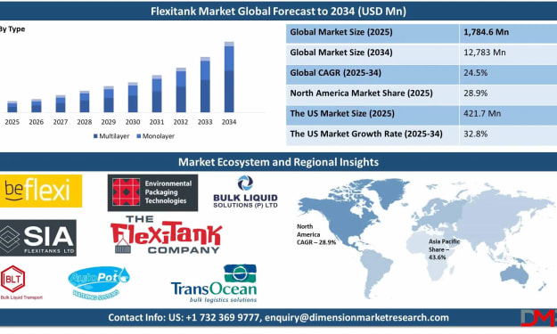 Global Flexitank Market: Key Trends, Insights, and Forecast The global flexitank market has seen rapid growth, driven by the increasing need for cost-effective and efficient bulk liquid transportation. Flexitanks, large flexible containers used for shipping non-hazardous liquids, have gained popularity as an alternative to traditional transportation methods like drums, tankers, and IBCs (Intermediate Bulk Containers). With an expected compound annual growth rate (CAGR) of 24.5%, the flexitank market is forecasted to grow from USD 1,784.6 million in 2025 to USD 12,783.8 million by 2034.