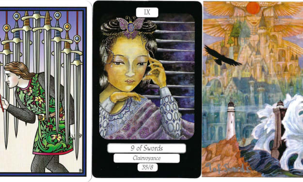 In relationship interpretation, tarot cards reveal the deeper complexities of relationships. One card that shows up repeatedly during crisis periods of emotional distress and inner anguish is the Nine of Swords. The Nine of Swords is a strong indicator that conveys anxiety, fear, and lying awake at night—sentiments which are very much connected to relationship issues. Whether you have trust problems, communication problems, or unfinished previous wounds, the Nine of Swords can reveal why you're distressed and how you can heal.