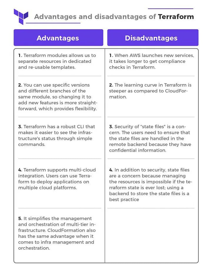 While both tools are robust and have their benefits, let’s look at the comprehensive list of advantages and disadvantages of Terraform vs CloudFormation.