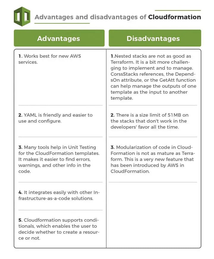 - Modularization of code in CloudFormation is not as mature as Terraform. This is a very new feature that has been introduced by AWS in CloudFormation.