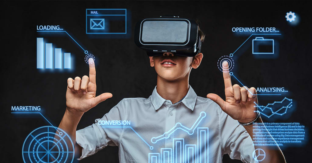 VR, on the other hand, involves the creation of a fully immersive digital environment, typically viewed through a headset. VR can be used to create simulations for training or entertainment purposes, as well as for teleconferencing or remote collaboration. For example, VR can be used in healthcare to create simulations that allow medical students or healthcare workers to practice procedures in a safe and controlled environment.