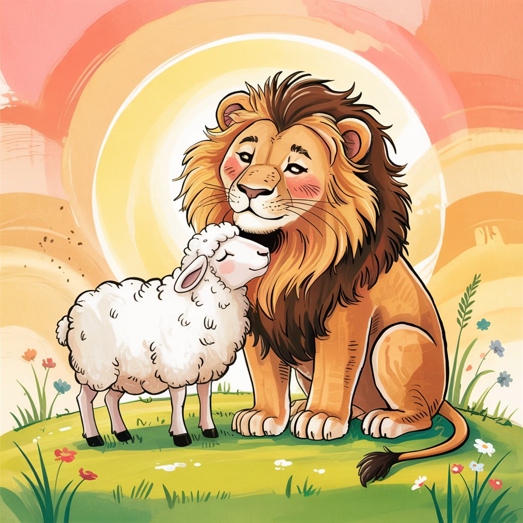 In the same meadow lived a gentle sheep named Lily. Her wool was as white as snow, and she had the kindest eyes in the entire meadow. While the other animals avoided Leo, Lily wasn’t afraid. She had heard tales of the lion's kindness hidden beneath his fierce exterior, and she believed in the goodness that could still exist in him.