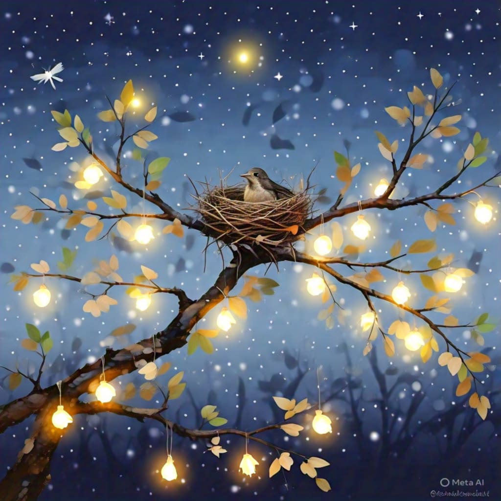 Luma lived in a nest high up in an old oak tree. She had built the nest carefully, using twigs, leaves, and bits of soft moss. It was warm and safe. But more important than the nest itself were the three tiny eggs inside. Luma was going to be a mother soon, and she loved her eggs more than anything in the world.