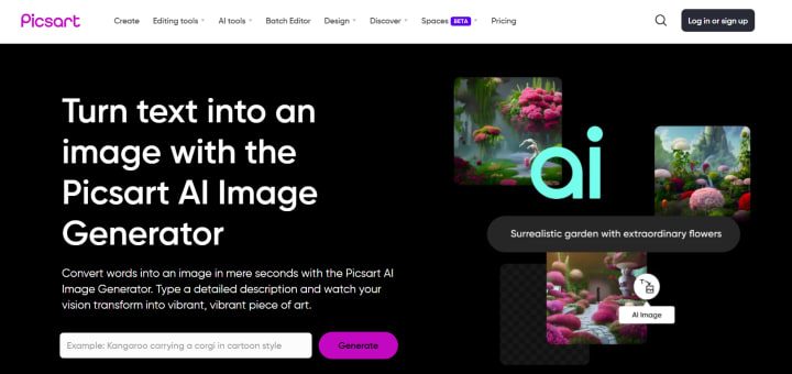 Picsart is a popular photo and video editing app that includes an AI image generator feature. Users can create amazing images from text prompts across different categories, including animals, nature, fantasy, art, and more. The generated images can be further edited using Picsart's editing tools.