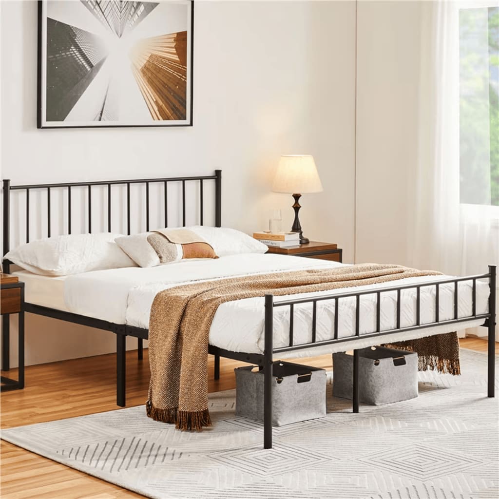 Crafted from durable steel, the frame ensures long-lasting strength and stability, capable of supporting a variety of mattress types, including memory foam, hybrid, and innerspring models. The frame’s sleek black finish blends seamlessly with most bedroom decor, whether you're going for a minimalist, modern, or industrial look.