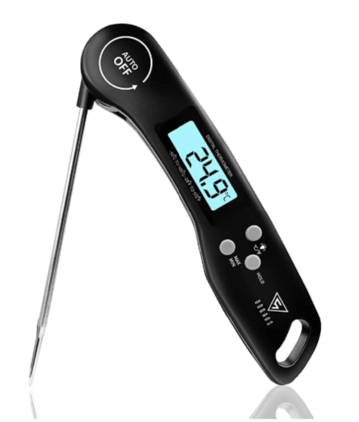 3. Another essential kitchen gadget on our list is the Meat Thermometer, designed to provide precise temperature readings for perfect cooking results. The DOQAUS updated version instant read thermometer takes accuracy to the next level, delivering temperature readings within 3 seconds. With a wide temperature range of -58°F - 572ºF/-50° C - 300° C, this digital meat thermometer is suitable for various culinary occasions, including steaks, BBQ, jams, and even icy beer.