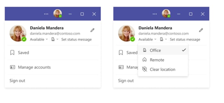 Setting your location for the day is easier than ever – just click on your profile picture within Teams, view account settings and set your working location for the day. You can change your location from any device, and teammates using the Scheduling Assistant within Outlook to create a meeting will see your updated location!
