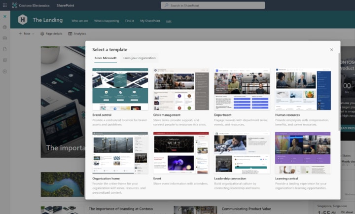 Powered by Microsoft Syntex, users will be able to browse and preview potential templates for a new or existing SharePoint site. The wide selection of templates means you can be sure to find one that suits your brand, business objectives and best furthers your goal for the site.