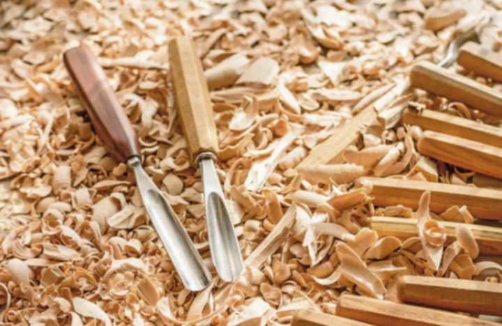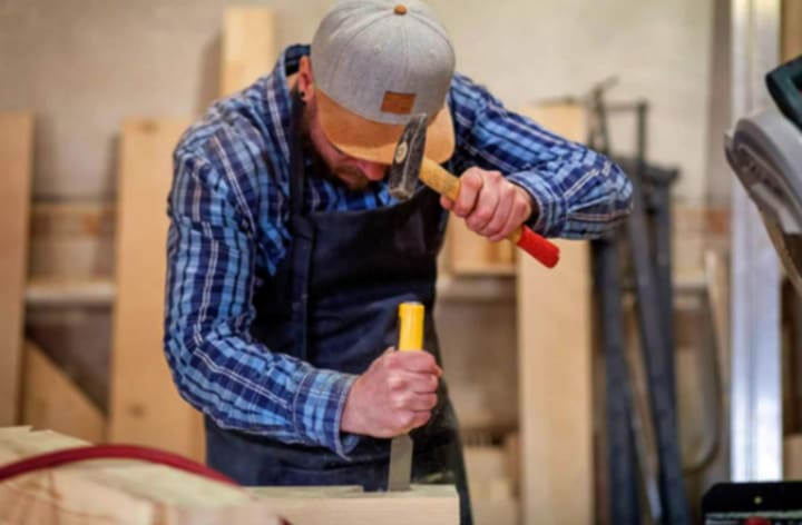 Mainly used in large engraving creations. For example, engraving voluminous wood or stone engravings. The carver is required to use a marker to mark the location of the engraving and the portion of excess material to be removed from the engraving material. A hammer is then used to drive the chisel's blade into the material and then forcefully remove the excess material.