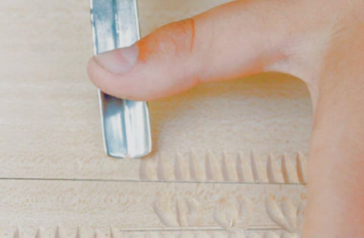 The beveled knife has a “V” shaped curve, which is suitable for detailing and trimming during the engraving process. The miter knife should be sharpened before use to keep the blade sharp. The blade and the engraving surface need to maintain a 45 degree angle of inclination before engraving. You also need to choose the right strength and angle based on the hardness and grain of the material you are engraving. For example, softwoods need to be carved with the grain, while hardwoods are the opposite.