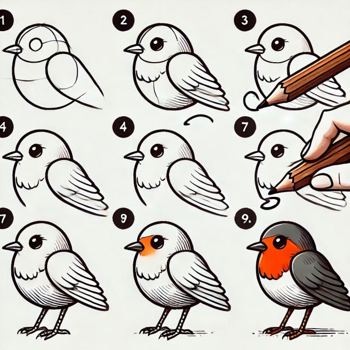 Drawing a bird step by step helps kids develop patience and attention to detail. The process of following a tutorial and adding layers of details can help improve focus and concentration.