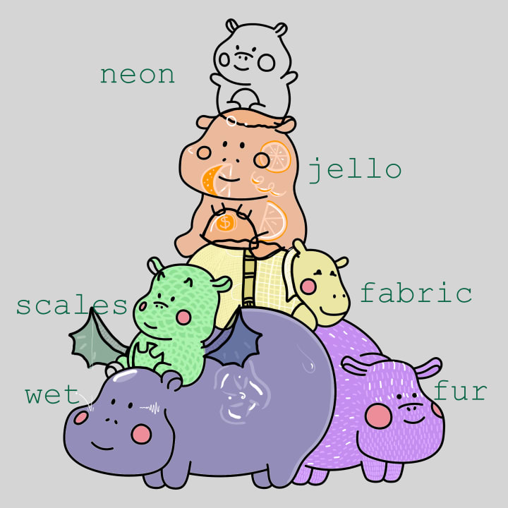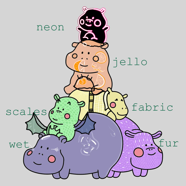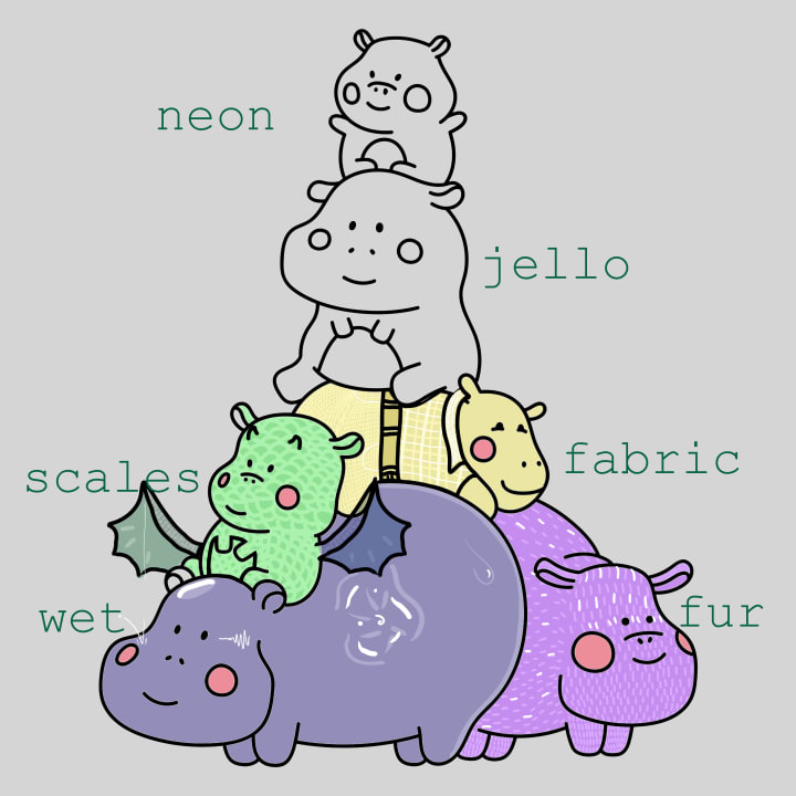 To begin the tutorial proper, I'm going to start at the bottom of the pile and work my way to the top. Wet and fur are both foundational textures, ones you can use to build onto others. Since wet is both simple and fun, it's perfect for setting up your working layers.