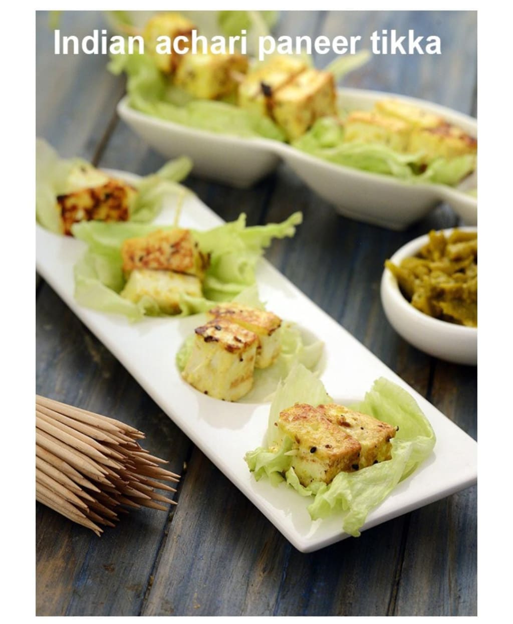Serve the Achari Paneer Tikka immediately with Dahi Mint Chutney.