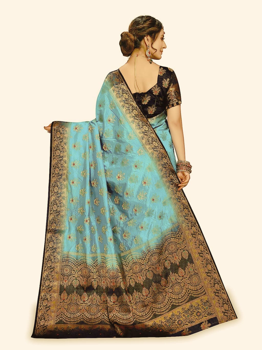 Material: Kanjivaram sarees are crafted using pure mulberry silk threads, which are known for their strength, durability, and lustrous appearance.
