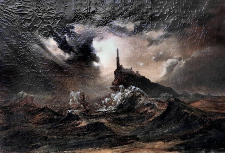 English artist Joseph Wright of Derby was a landscape artist during the 18th century. This artwork is an amazing depiction of darkness mingling with the fiery glow of the fire from the lighthouse cast upon the sea. Fires raging at the top of lighthouses were a common sight during this time due to technology flaws in most lighthouse structures.