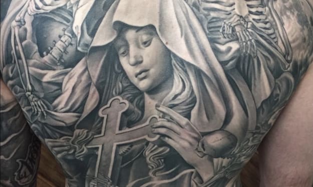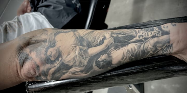 I'm Ray Angulo, a custom tattoo artist at Reckon Tattoo, one of the best-rated tattoo shops in Arizona. I specialize in hyper-realistic Christian, biblical designs and meaningful tattoos, including fine line work and religious realism.