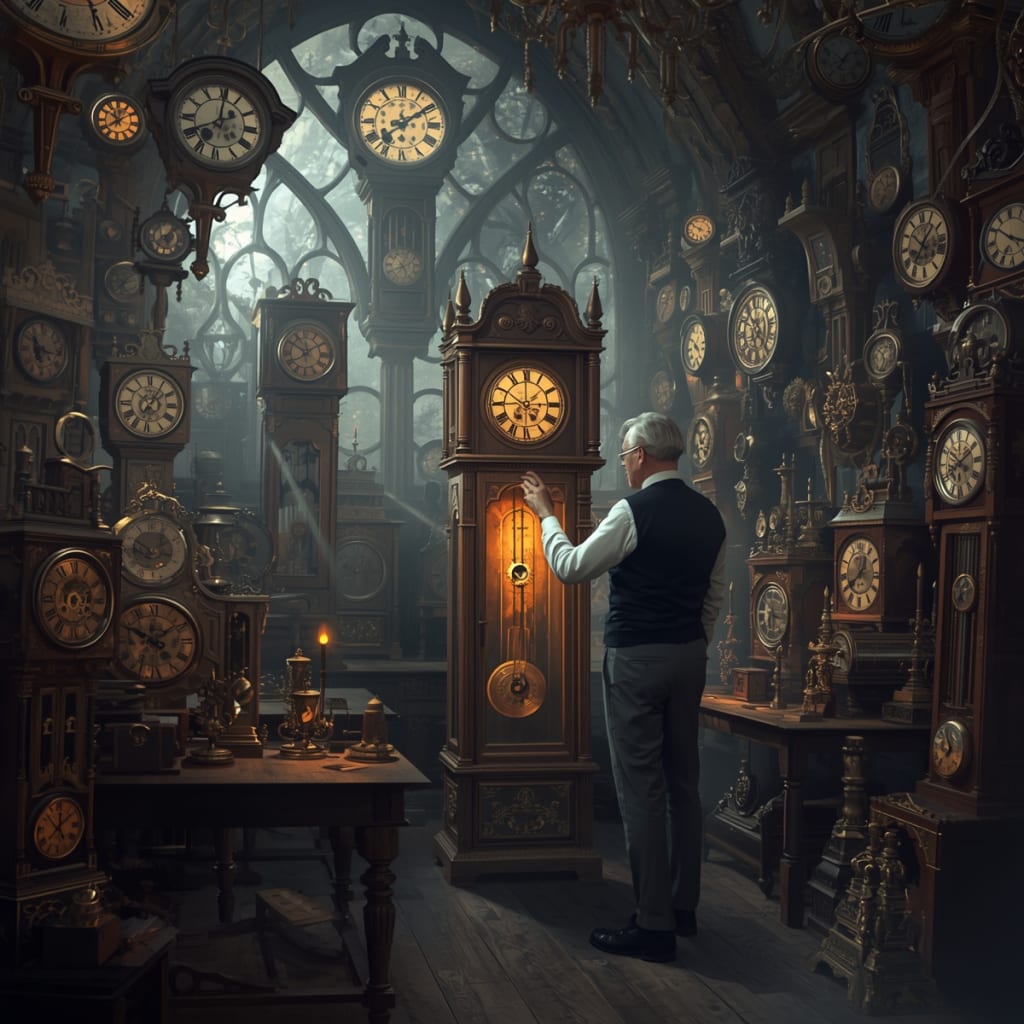 On a rain-drenched afternoon, a young journalist named Clara Bennett arrived in Wrenford. Tales of Elias Thorne had reached her ears, and curiosity stirred like an ember in her chest. Determined to uncover the secrets of his workshop, she pushed open the shop’s bell-laden door. Immediately, the world outside seemed to vanish. Hundreds of clocks surrounded her, their ticking merging into a rhythm that felt alive, as though the very air breathed with them.
