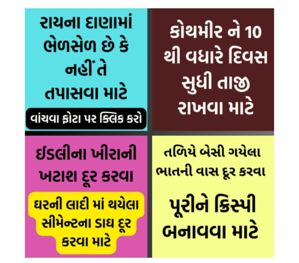 To remove the smell of rice that has settled at the bottom | To keep coriander fresh | To remove the sourness of idli pickle | To check if mustard seeds are adulterated or not | Kitchen tips to remove cement stains from the floor |