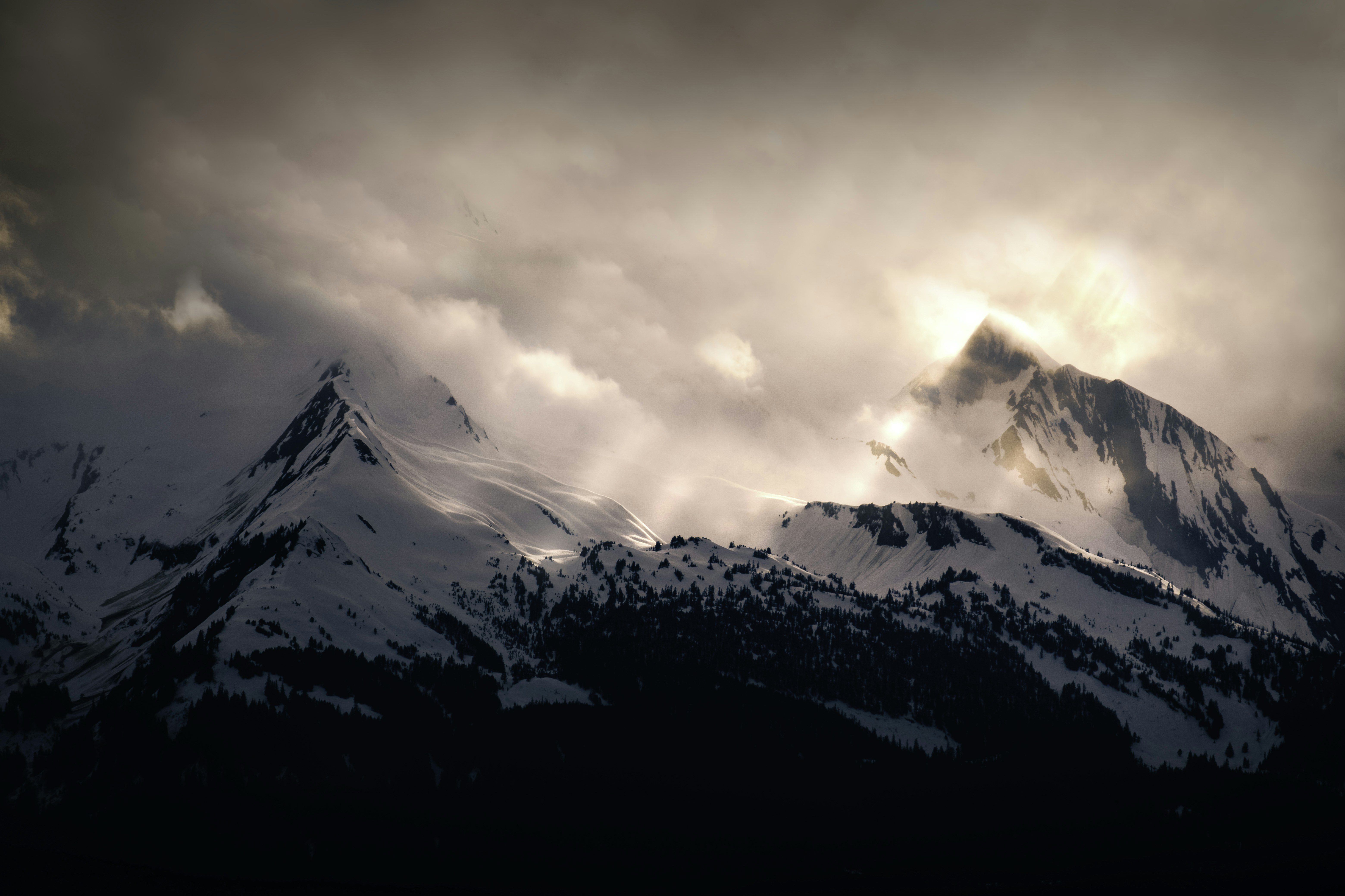 Clouds and wind take hold of the icy silver peak guarding those below