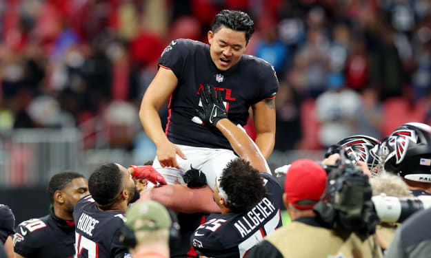 Week 8 began with the Tampa Bay Buccaneers facing the Baltimore Ravens on Thursday Night Football, and that outing was not a good one for the Bucs. They found themselves dominated by the Ravens defense, as the Bucs couldn't do a thing until it was too late. The Bucs lost, 27-22, which is their third straight loss--a trait that is very foreign to Tom Brady. So why am I mentioning this with the main photo centering the Atlanta Falcons? It's simple. Because of Tampa Bay's loss, the Falcons and the Carolina Panthers' head to head game was for first place in the NFC South.